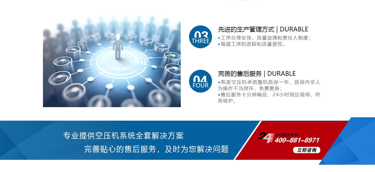 合肥凱圣節(jié)能科技有限公司是從事永磁變頻螺桿壓縮機系統(tǒng)的設(shè)計、制造、安裝、調(diào)試、維修與一體的公司。 在多年的螺桿空壓機研發(fā)與推廣歷程里,凱圣聚集和培養(yǎng)了大量壓縮機技術(shù)設(shè)計和管理人員,迅速發(fā)展成為集研究、生產(chǎn)、銷售、服務(wù)等環(huán)節(jié)為一體、嚴格按照標(biāo)準(zhǔn)執(zhí)行的企業(yè),公司成立開始,即以滿足客戶的實際需求為己任,大力開拓國內(nèi)外節(jié)能型空壓機市場,并始終保持創(chuàng)新精神,全力研發(fā)更為節(jié)能的螺桿式空壓機,努力站在空壓機節(jié)能領(lǐng)域的排頭位置。 應(yīng)用范圍:公司產(chǎn)品廣泛應(yīng)用于機械、輕工、紡織、食品、石油、化工、冶金、礦山、電力、城建、醫(yī)學(xué)研究和科研等各行業(yè)中,將為節(jié)約能源做出巨大貢獻。公司秉承“信譽至上,...